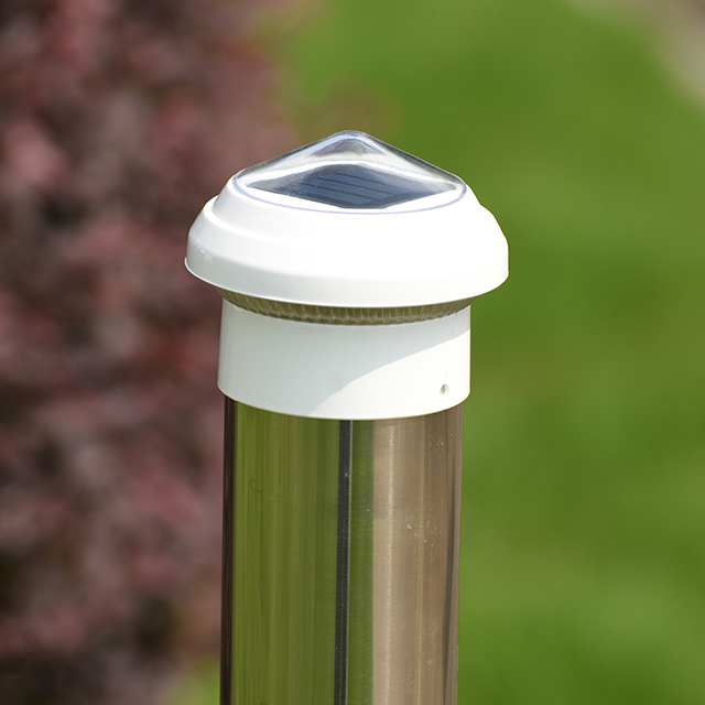 Ang 2211-CP1 WH post light ay pinapagana ng solar at may built-in na high-efficiency solar panel na maaaring awtomatikong sumipsip ng sikat ng araw sa araw at i-convert ito sa elektrikal na enerhiya, na nakaimbak sa built-in na baterya. Ang ilaw ay awtomatikong sisindi sa gabi nang walang anumang panlabas na koneksyon ng kuryente. Ito ay hindi lamang nakakatipid ng kuryente, ngunit binabawasan din ang problema ng cable layout, na higit na naaayon sa mga pangangailangan ng modernong tao para sa pangangalaga sa kapaligiran at pagtitipid ng enerhiya.