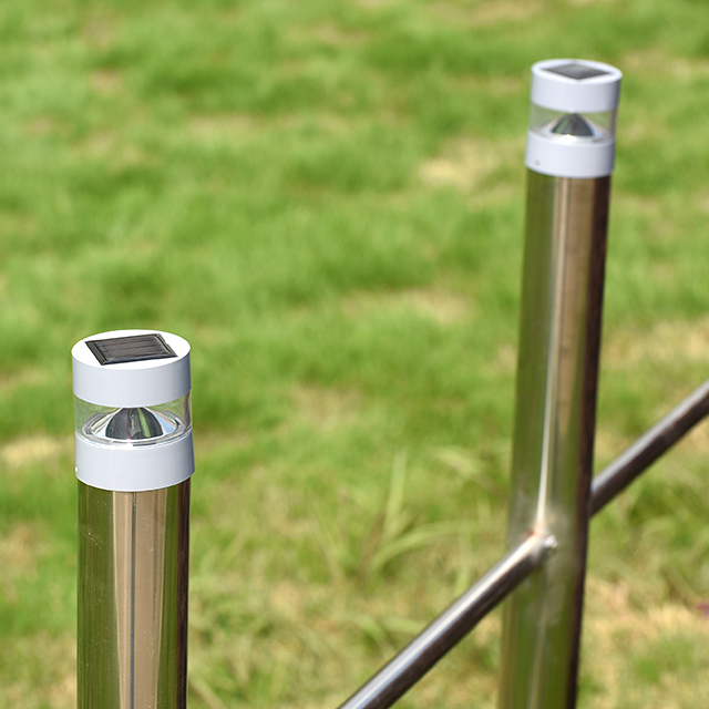 Dahil sa naka-istilo at simpleng hitsura nito, ang solar post light na ito ay hindi lamang isang tool sa pag-iilaw, kundi isang dekorasyon din upang pagandahin ang mga panlabas na espasyo. Kung ito man ay nasa isang garden path, isang terrace railing o sa paligid ng isang pool, maaari itong magdagdag ng isang eleganteng kapaligiran sa kapaligiran. Ginagamit man ito para sa dekorasyon ng bahay o landscape lighting sa mga pampublikong lugar tulad ng mga parke at hotel, magagawa ng liwanag na ito ang trabaho.